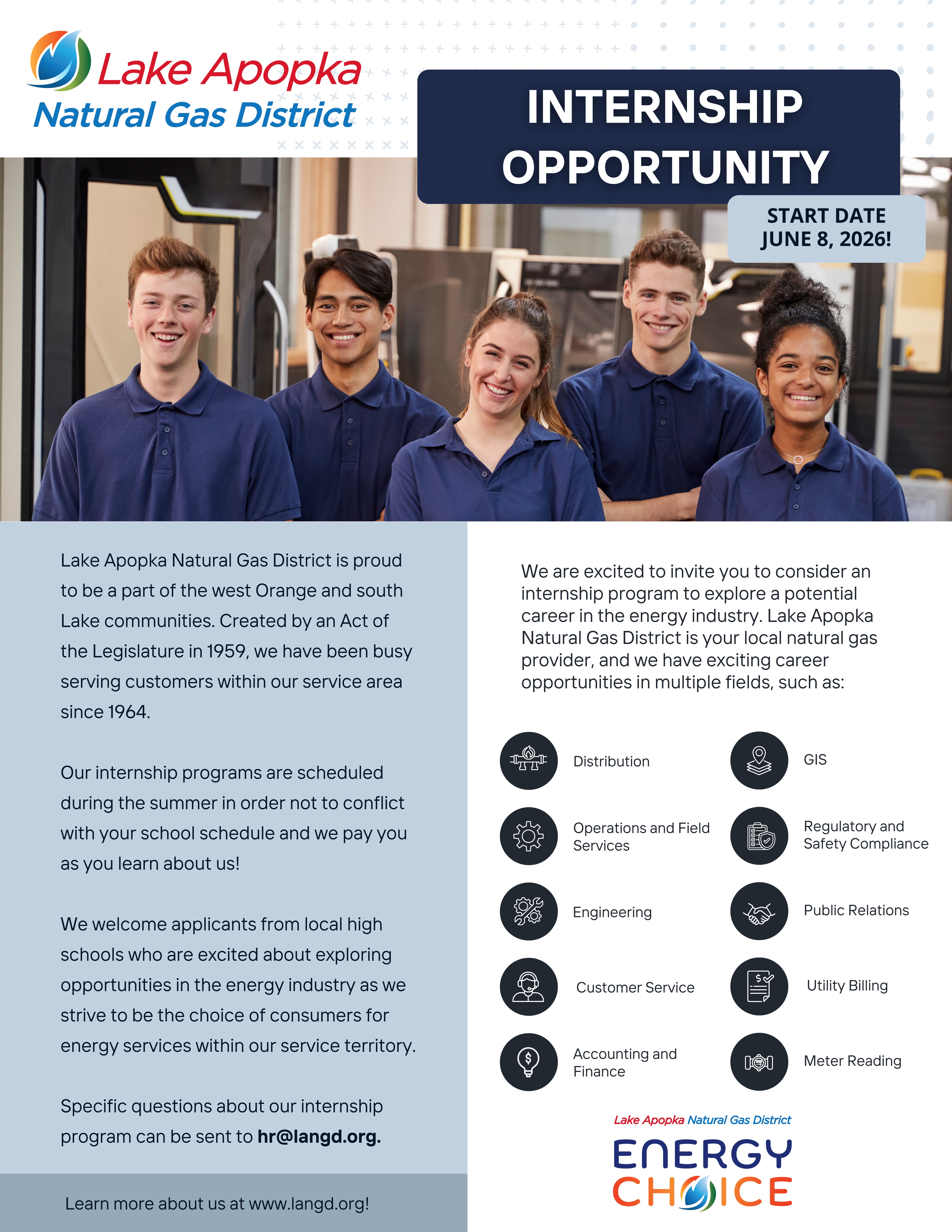 1320 Winter Garden-Vineland Rd. Winter Garden, FL 34787 Main Office: 407.656.2734 Open M-F, 8am-5pm | Copyright © Lake Apopka Natural Gas District. All right reserved. 6.4.3 |